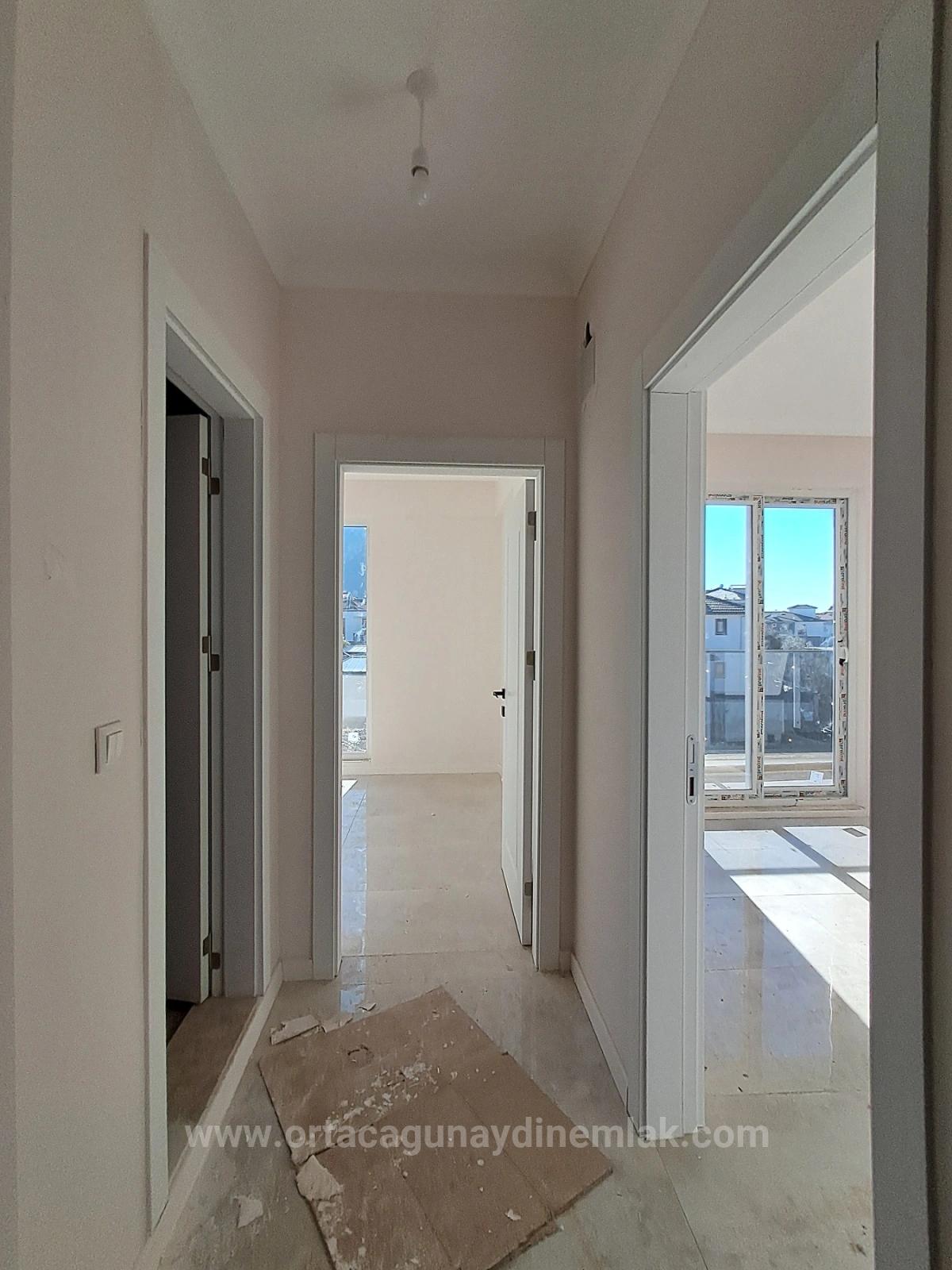 This is an apartment on an intermediate floor in a two-block complex with an open-plan kitchen and living room, and a pool view. The price is 4,500,000 TL + Negotiable