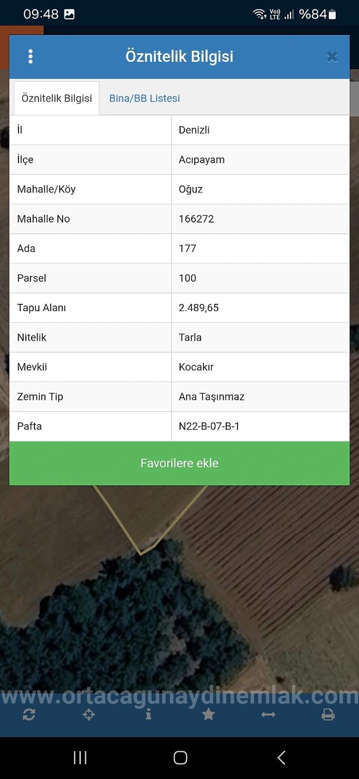 Расположен в районе Аджипаям Огзу, Денизли. Продается земельный участок площадью 2489 м² с единым свидетельством о праве собственности.